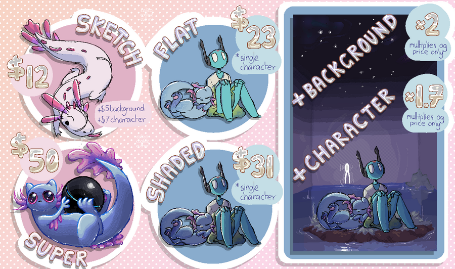 I take 2D artwork commissions :) Just message me anywhere!
