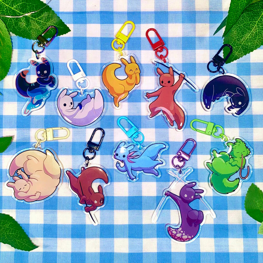 The collection of my products available to purchase at conventions :) [or DM me to buy online!]